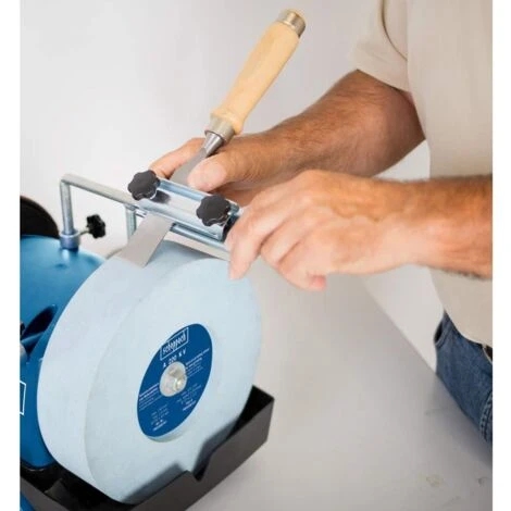 Il dispositivo di supporto Scheppach JIG 380 è indicato per affilare scalpelli, ferri delle pialle a mano e taglienti dritti in generale.