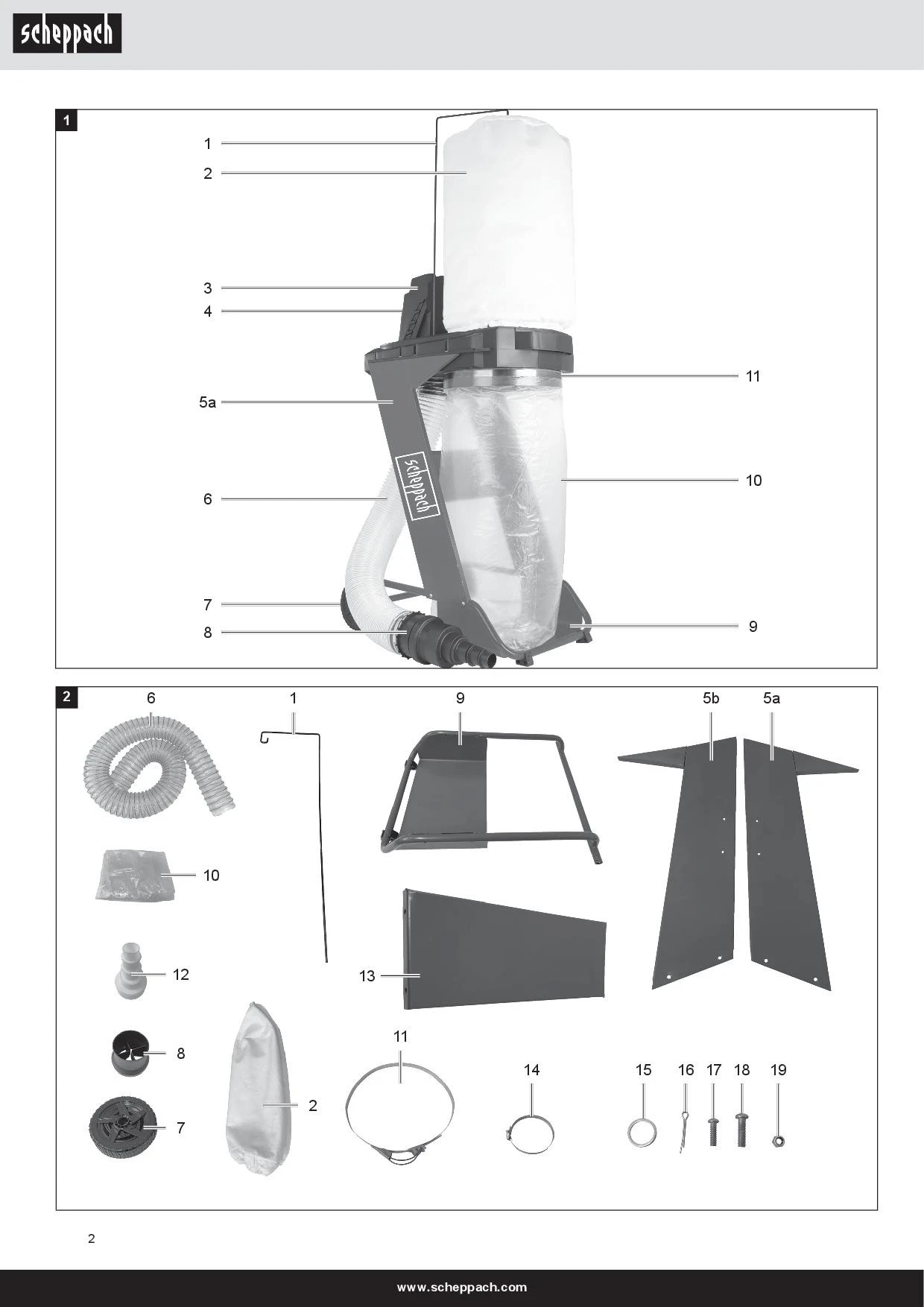 Scheppach DC500 – Aspiratrucioli aspiratore per legno, 550W