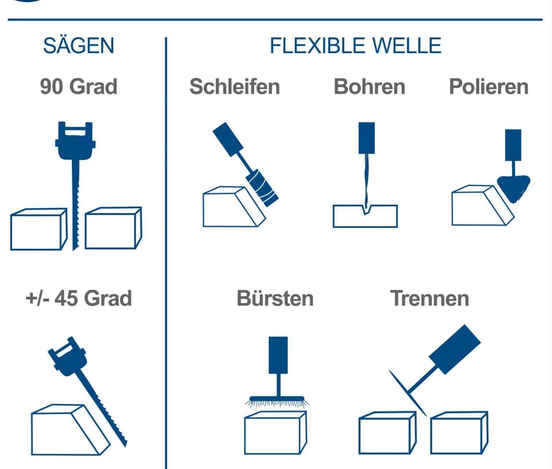 • Albero flessibile con mandrino portapunta per tagliare, levigare e lucidare