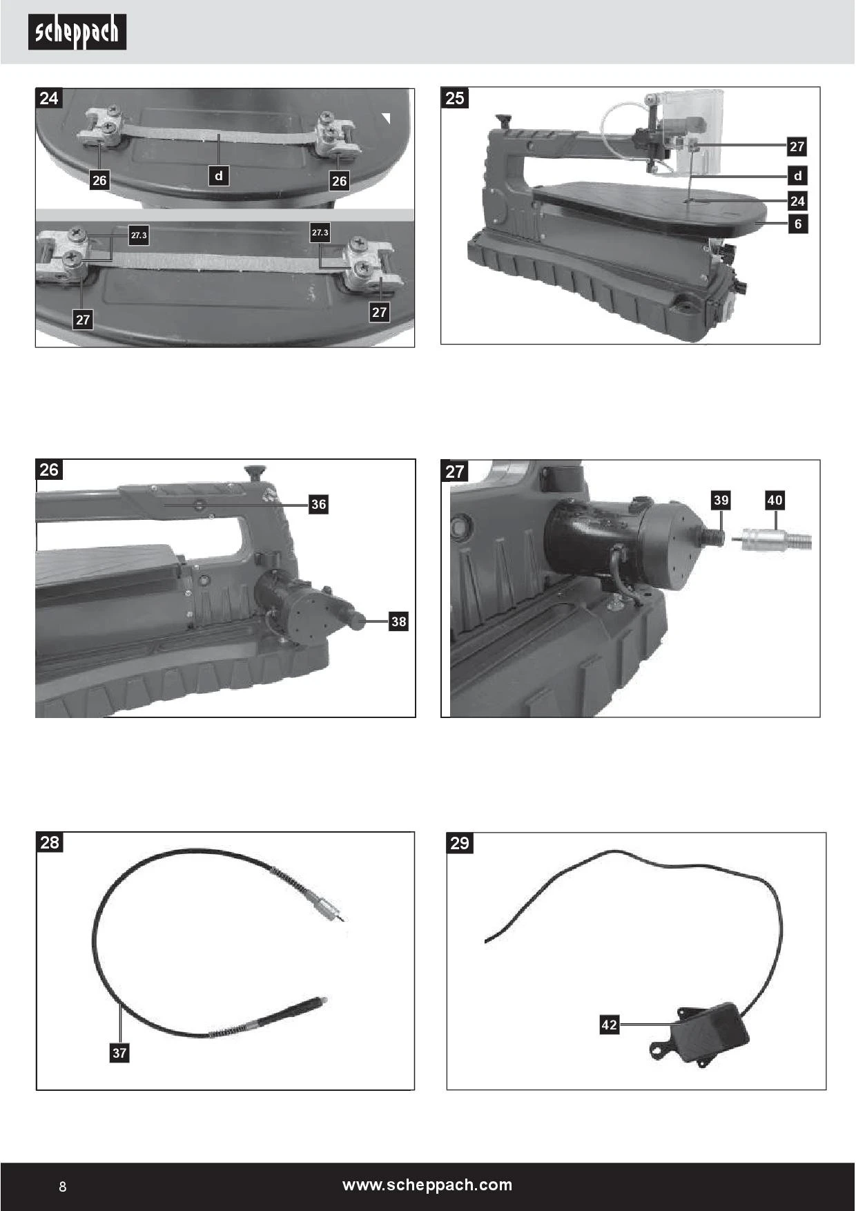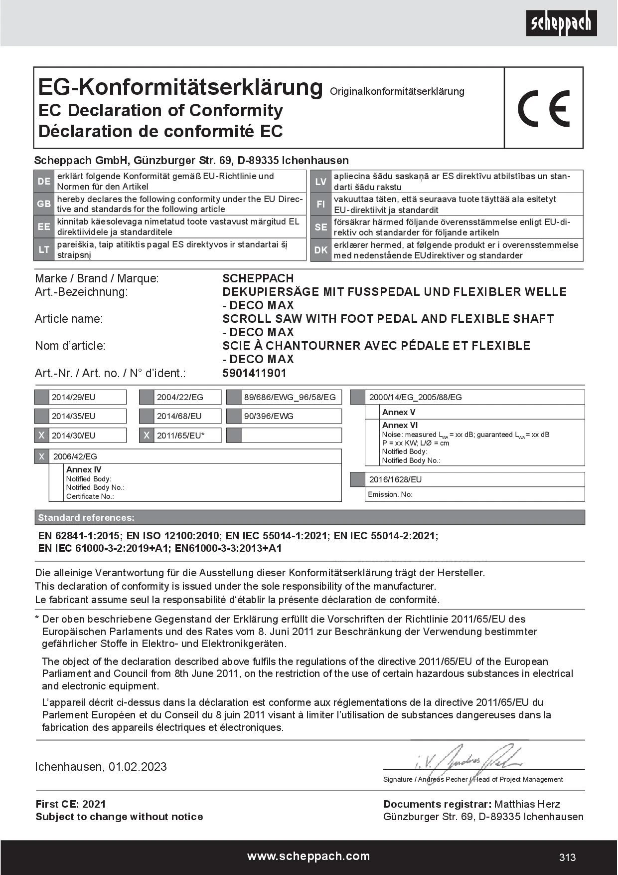 Massima flessibilità con la sega da traforo Scheppach DECO MAX. L’interruttore a pedale per il controllo della velocità di taglio consente di guidare il pezzo con entrambe le mani e quindi di realizzare ritagli e contorni di legno particolarmente fini. L’albero flessibile con mandrino portapunta viene utilizzato per tagliare, levigare e lucidare.